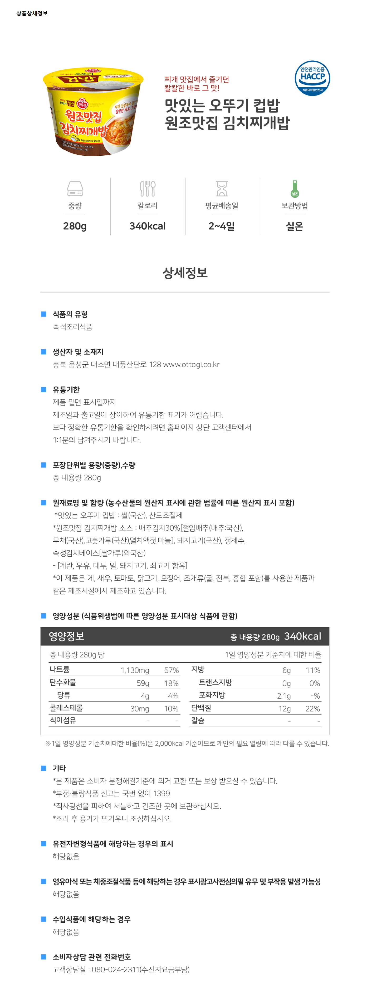| 품명 및 모델명 | 오뚜기 컵밥 원조맛집 김치찌개밥 310g 12EA |