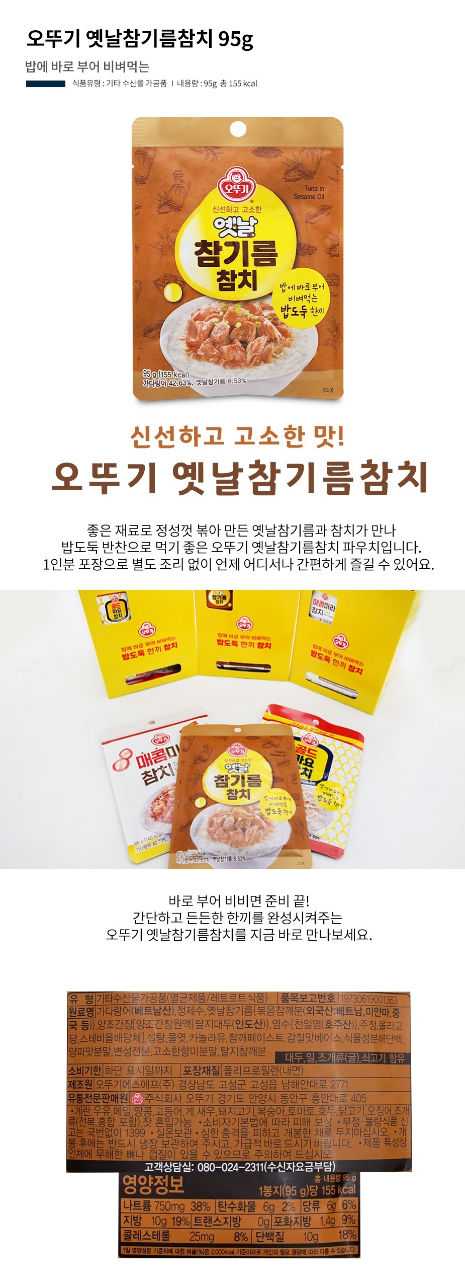 무배) 오뚜기 옛날참기름참치 95g X 15개 (1통)
