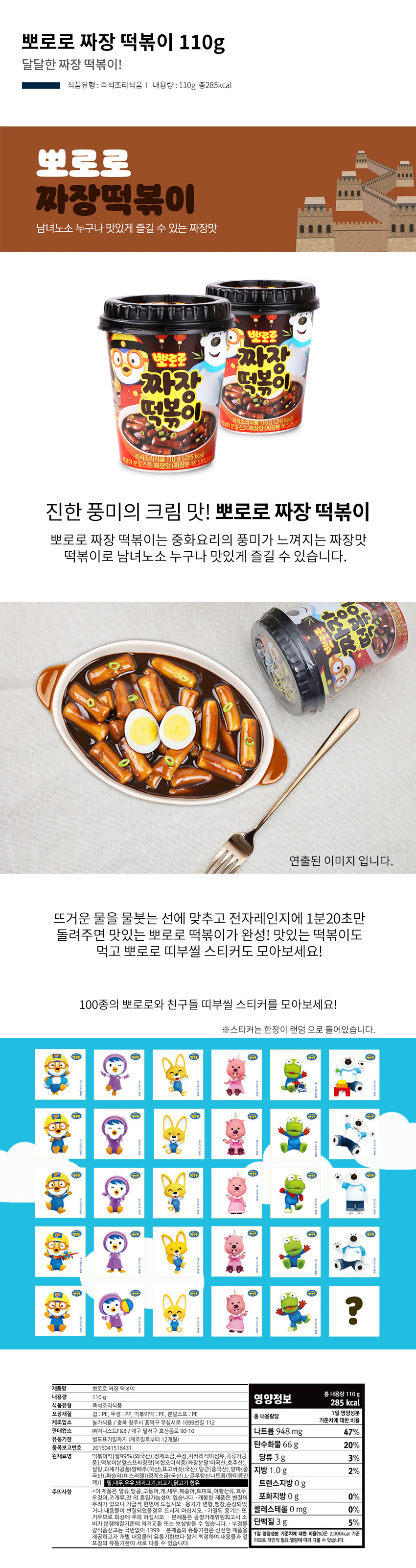 무배) 뽀로로 짜장 떡볶이 110g X 16개 (1박스)