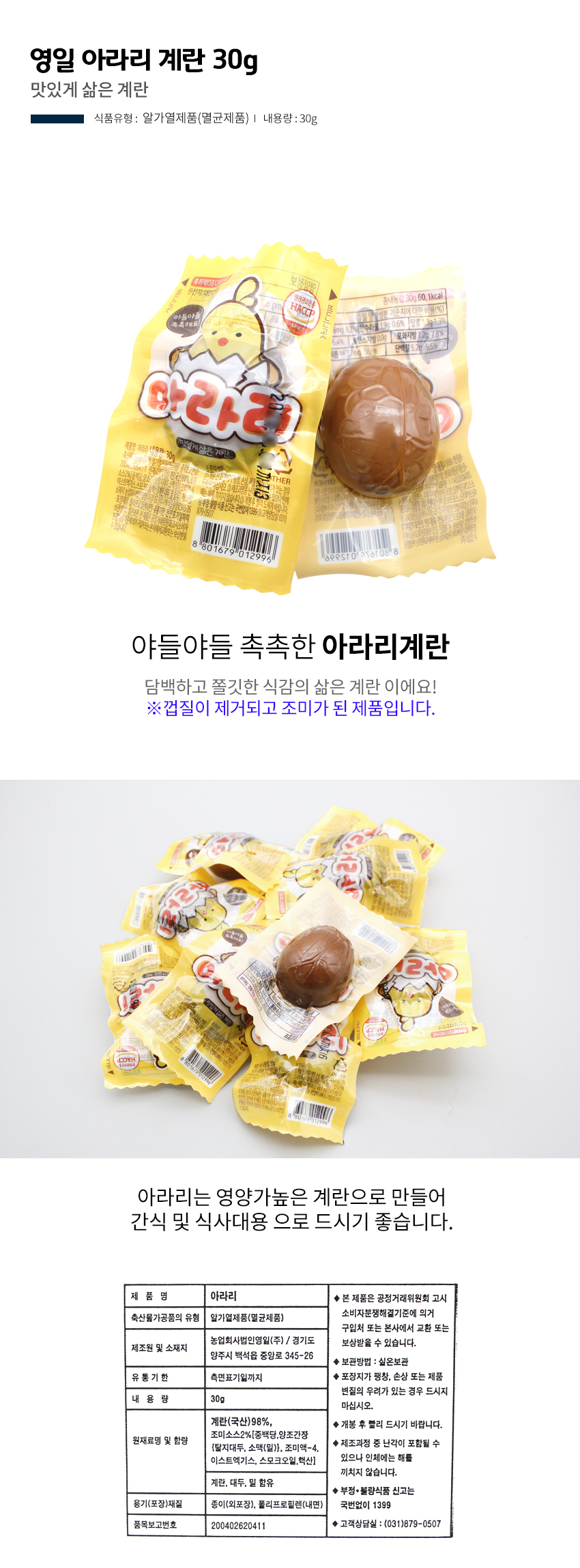 무배) 영일 아라리 계란 30g X10개 삶은달걀