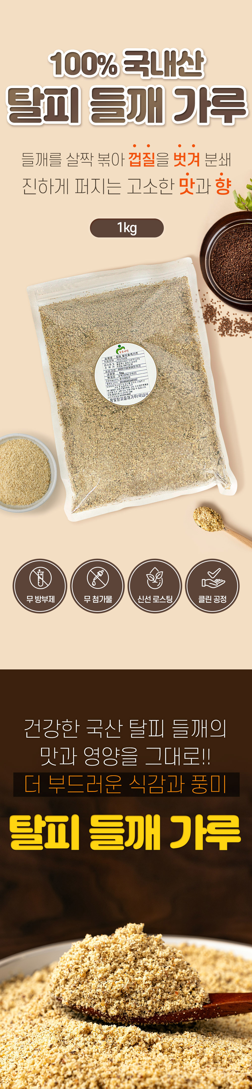 | 품목 또는 명칭 | 국산 탈피들깨분말 1kg 안전한 로스팅 가공 |