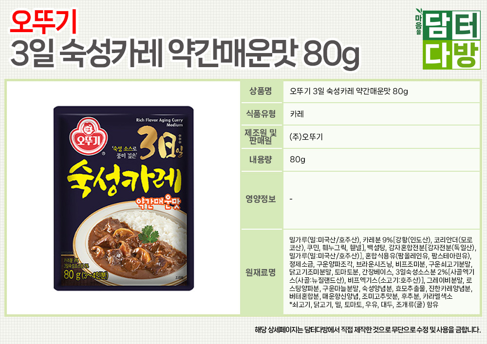 오뚜기 3일 숙성카레 약간매운맛 80g X 5개