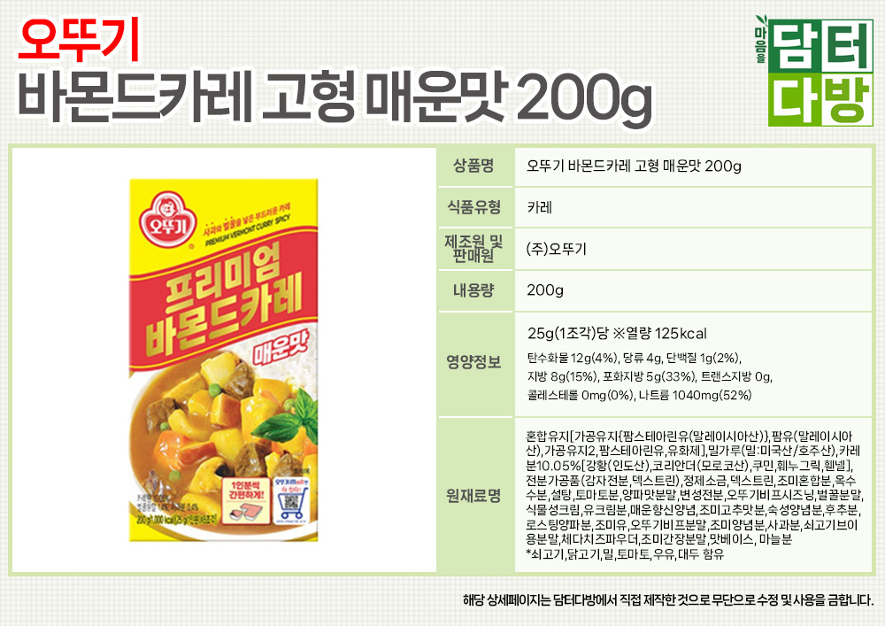 오뚜기 바몬드카레 고형 매운맛 200g x 4개