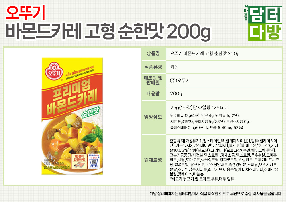 오뚜기 바몬드카레 고형 순한맛 200g x 4개
