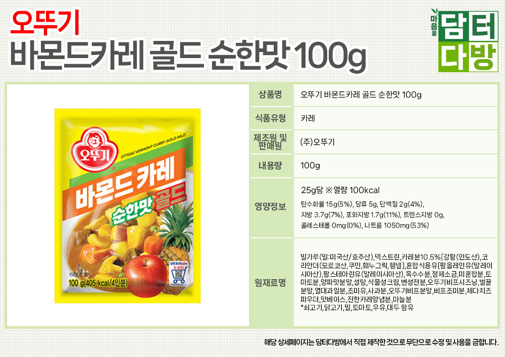 오뚜기 바몬드카레 골드 순한맛 100g x 2개