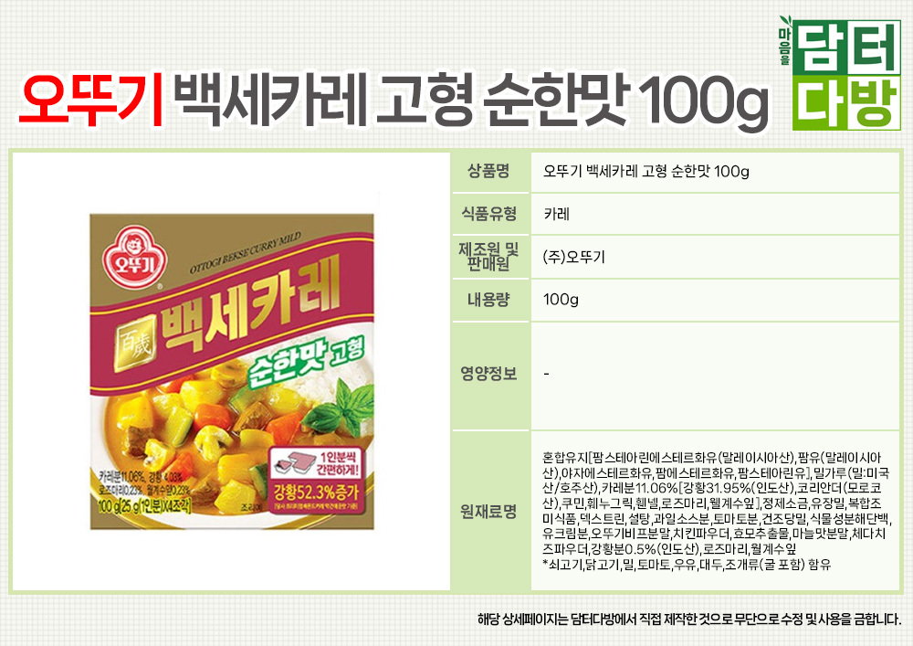 오뚜기 백세카레 고형 순한맛 100g x 3개