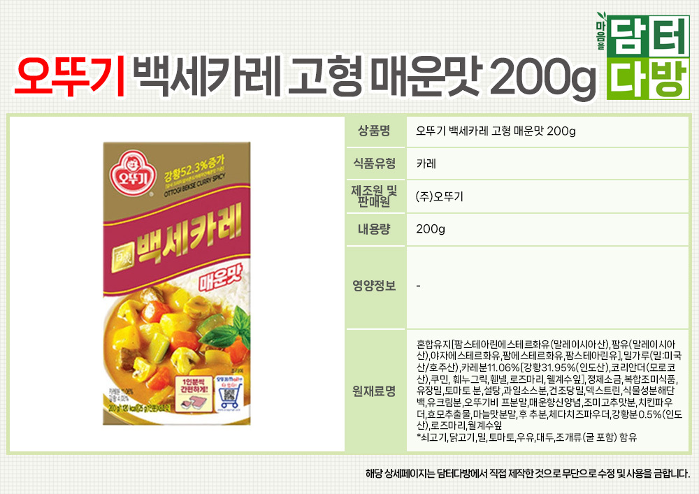 오뚜기 백세카레 고형 매운맛 200g x 4개