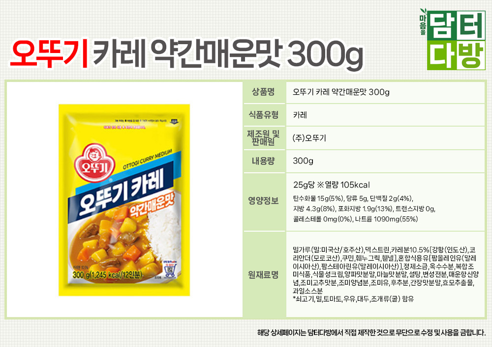 오뚜기 카레 약간매운맛 300g x 5개
