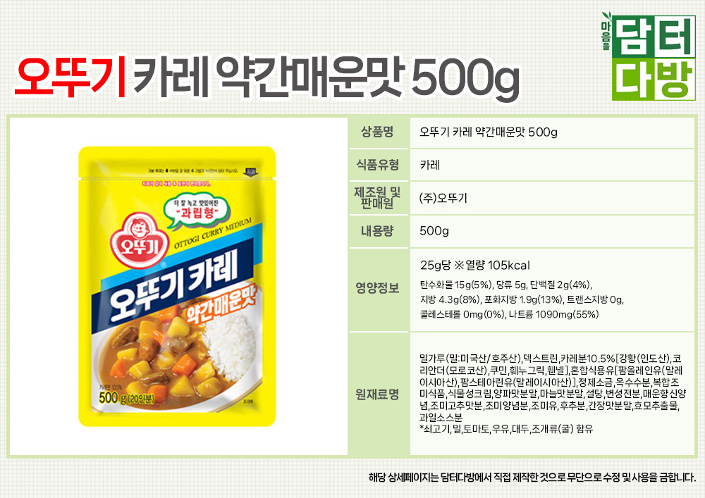 오뚜기 카레 약간매운맛 500g x 5개