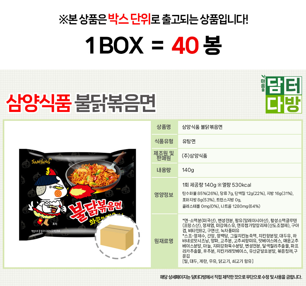 삼양식품 불닭볶음면 1BOX (40봉)