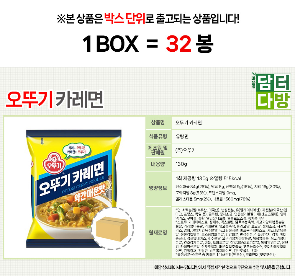 오뚜기 카레면 1BOX (32봉)
