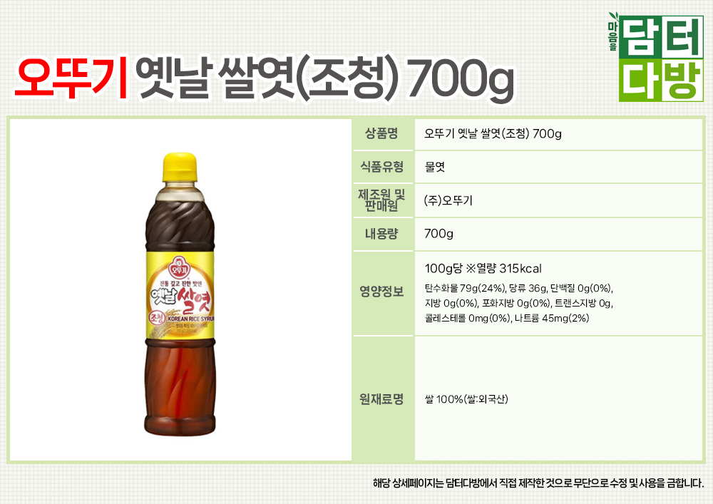 오뚜기 옛날 쌀엿(조청) 700g X 3개