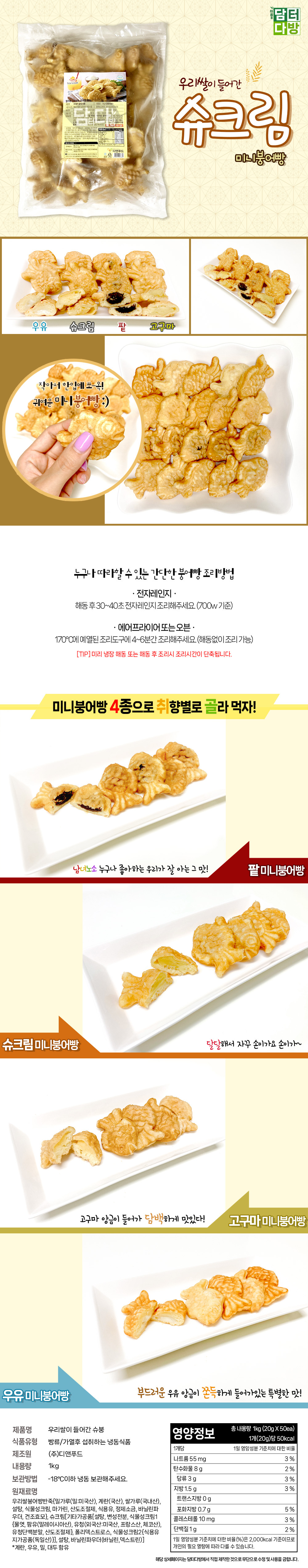 반쿡 우리쌀이 들어간 냉동 미니붕어빵 슈크림맛 1kg