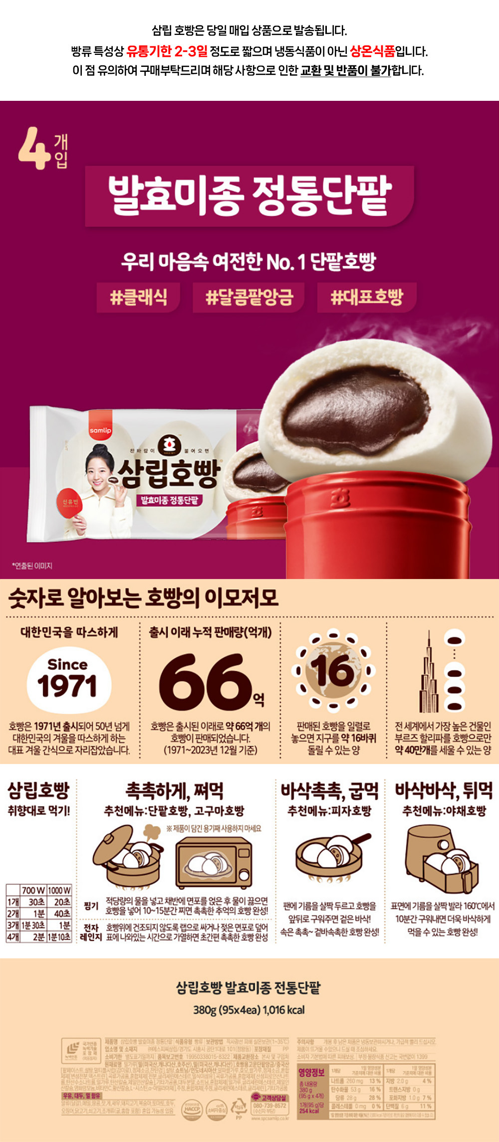 삼립 호빵 정통단팥 4입 380g