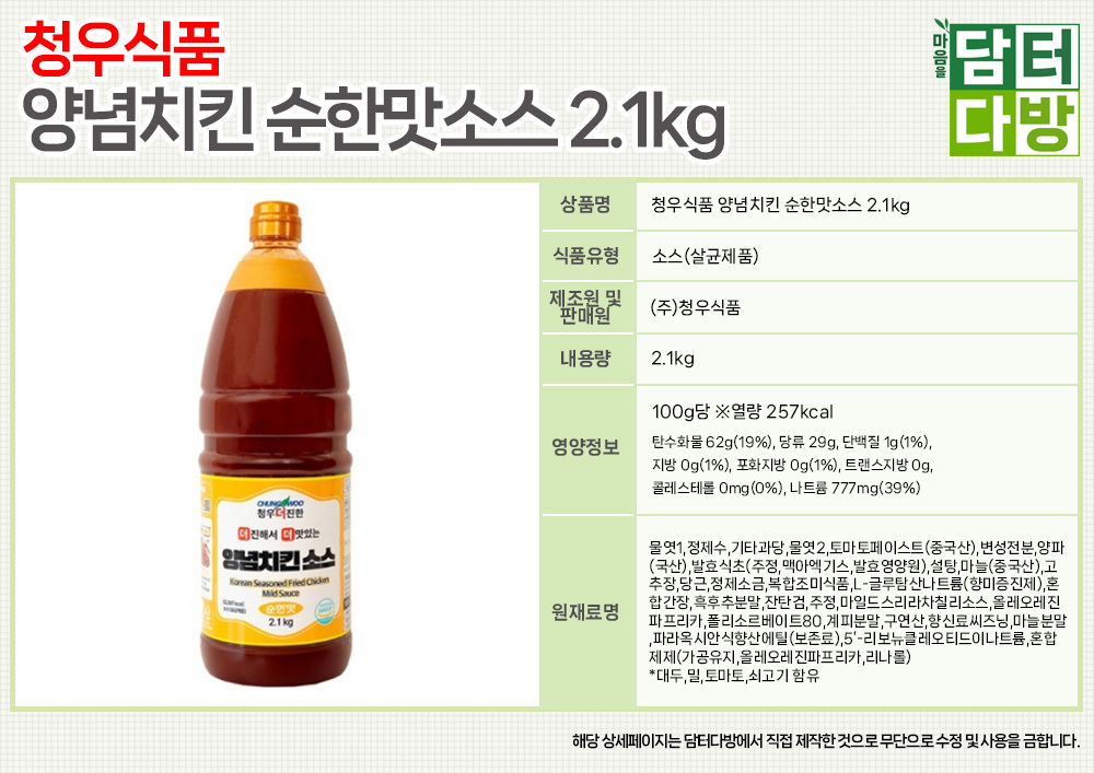 청우식품 양념치킨 순한맛소스 2.1kg