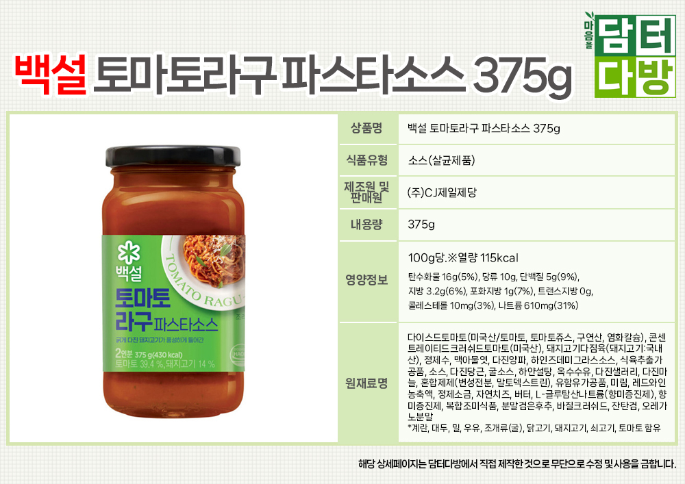 백설 토마토라구 파스타소스 375g X 3개