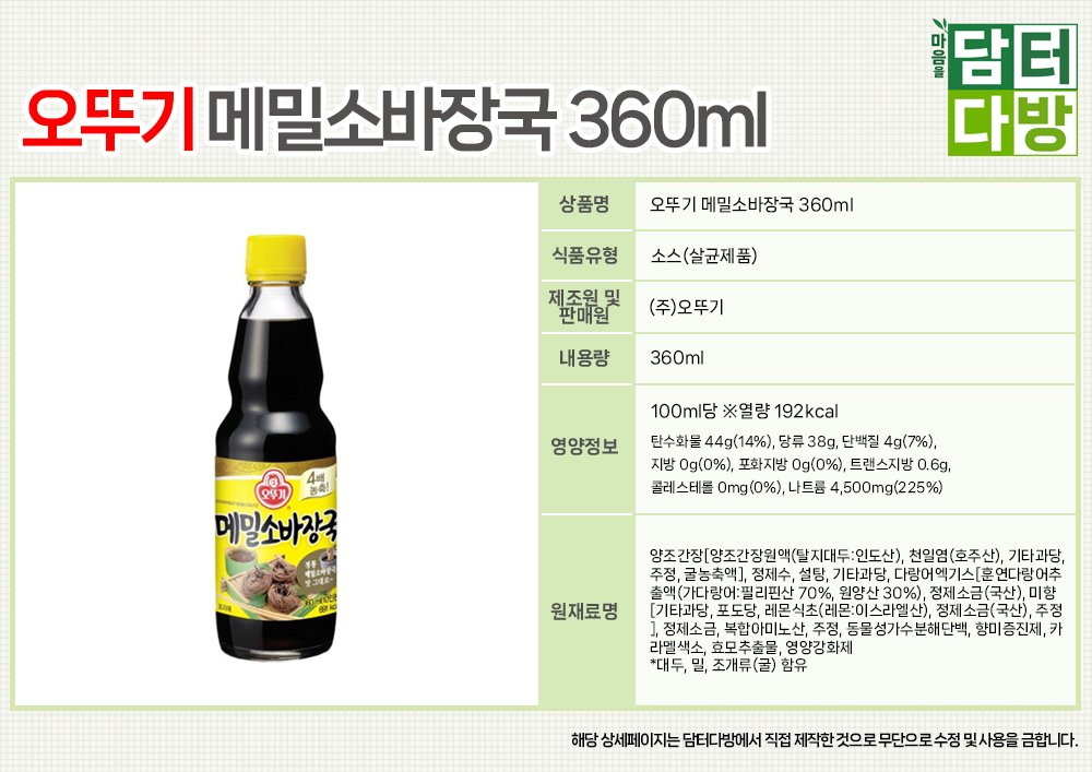 오뚜기 메밀소바장국 360ml X 3개
