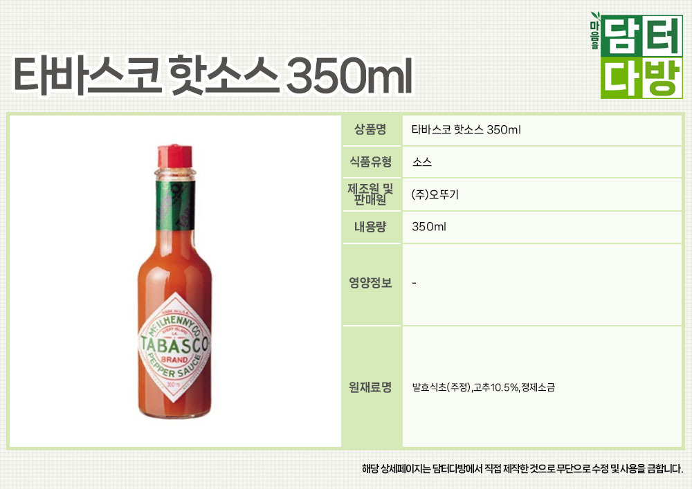 타바스코 핫소스 350ml