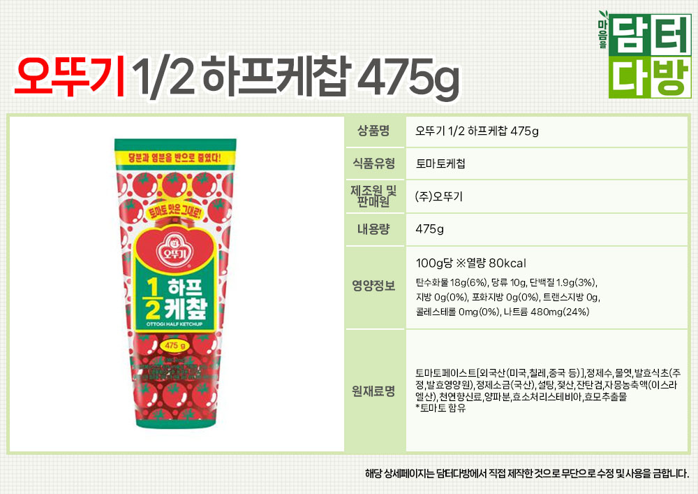 오뚜기 1/2 하프케찹 475g x 5개