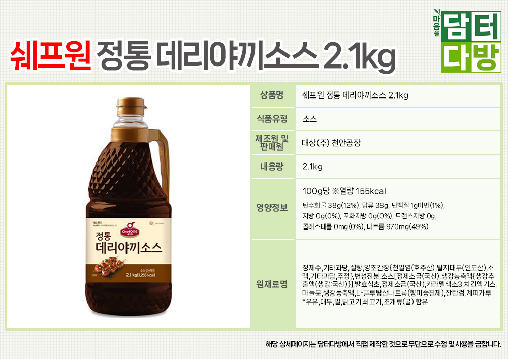 쉐프원 정통 데리야끼소스 2.1kg