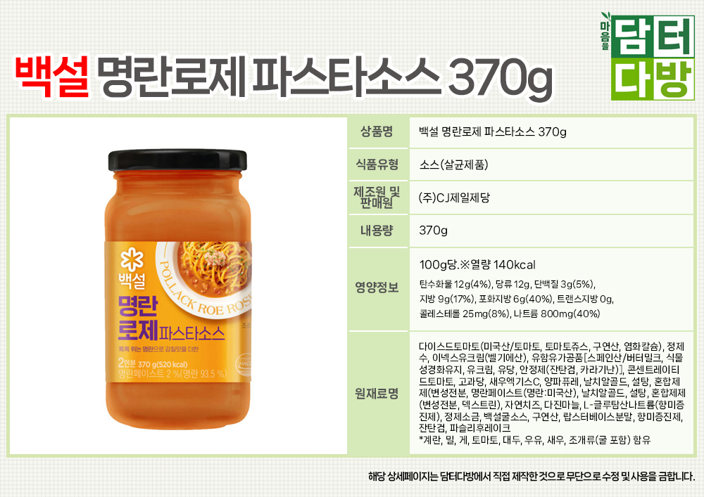 백설 명란로제 파스타소스 370g X 3개