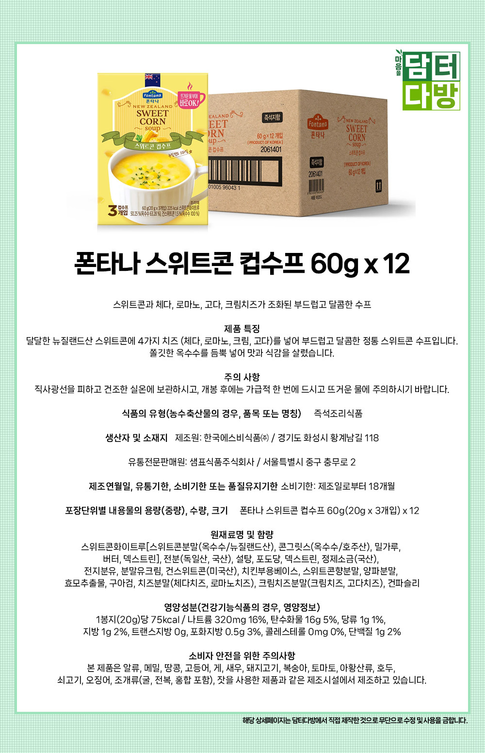 폰타나 스위트콘 컵수프 60g x 12