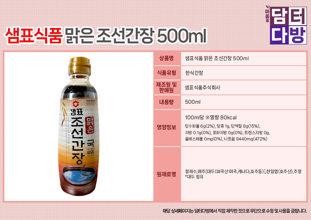 샘표식품 맑은 조선간장 500ml X 3개