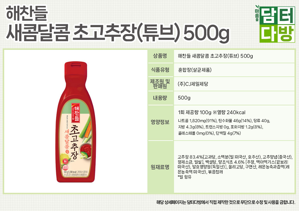 해찬들 새콤달콤 초고추장(튜브) 500g X 3개
