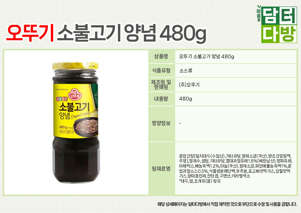오뚜기 소불고기 양념 480g x 3개
