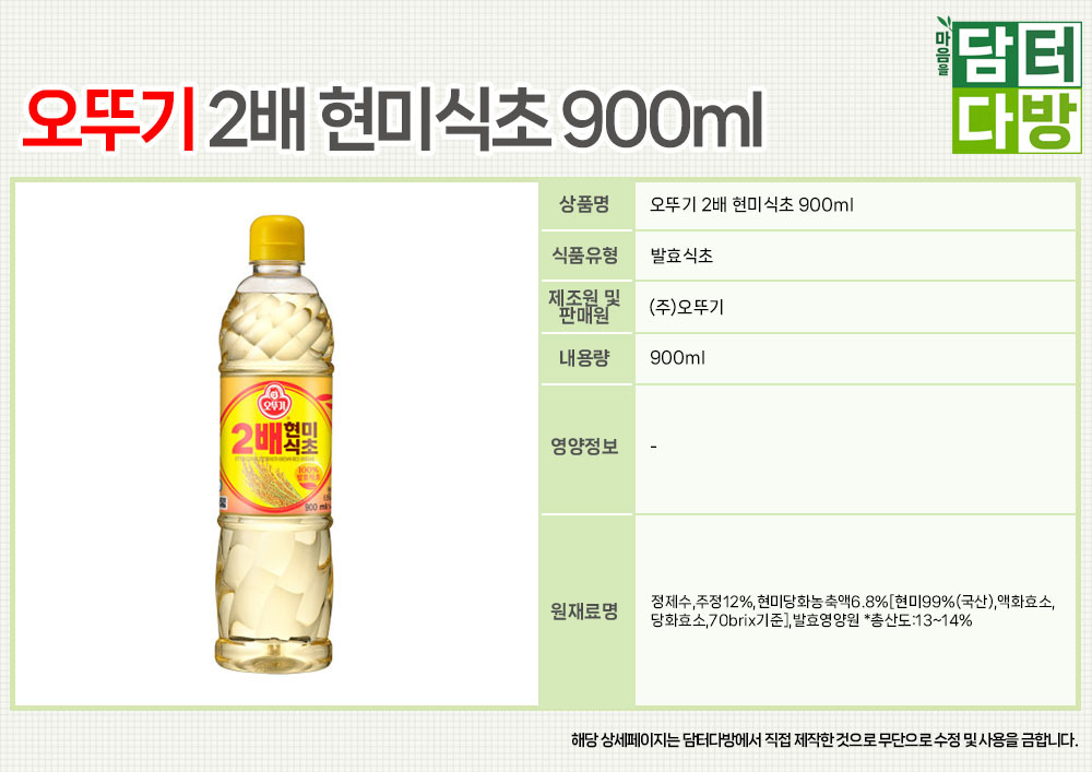 오뚜기 2배 현미식초 900ml x 3개