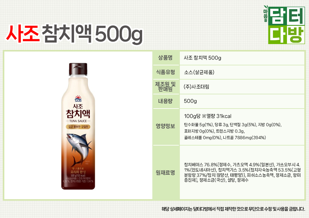사조 참치액 500g X 3개