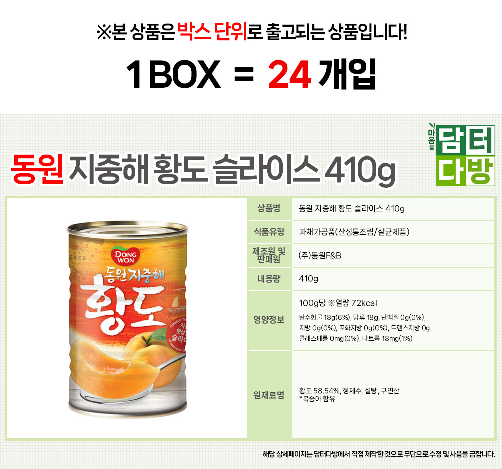 동원 지중해 황도 슬라이스 410g 1BOX (24개입)
