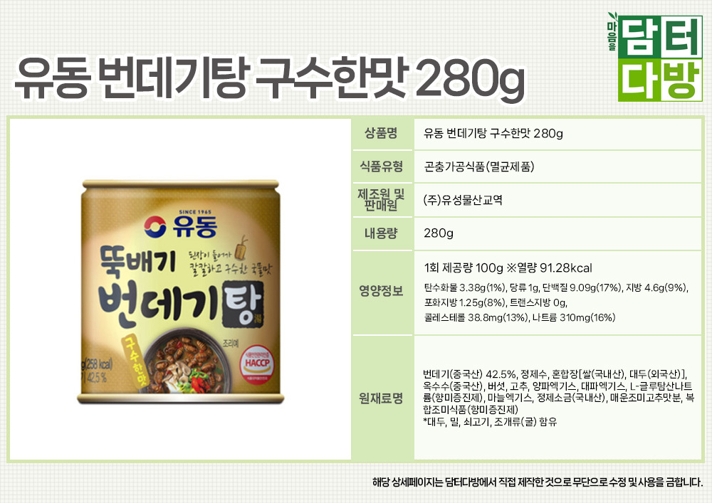 유동 번데기탕 구수한맛 280g X 12개