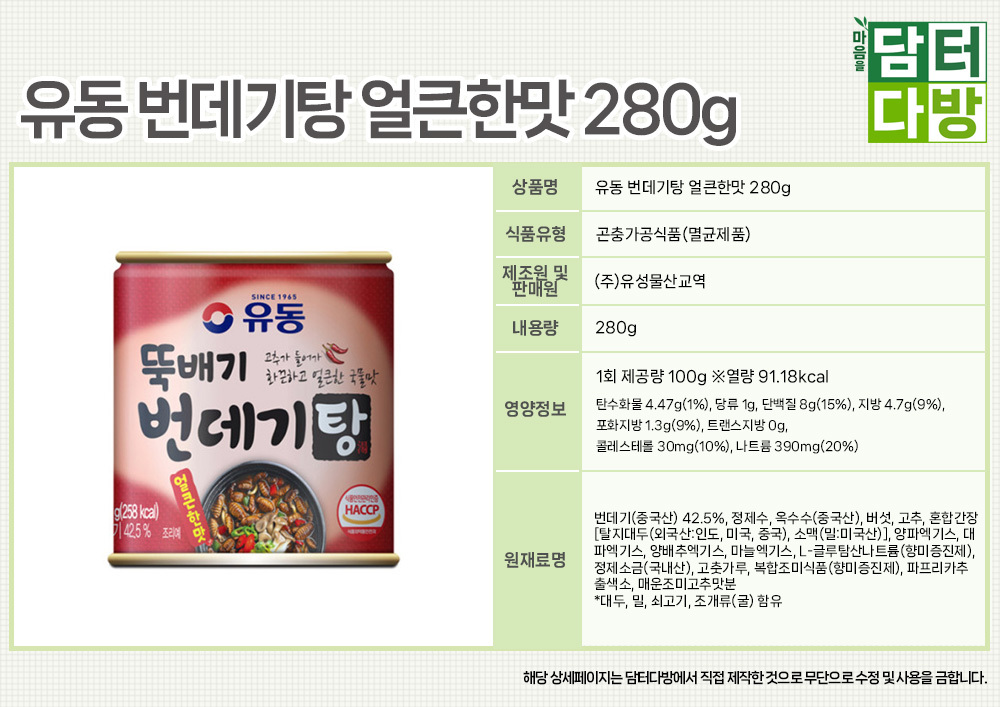 유동 번데기탕 얼큰한맛 280g X 12개