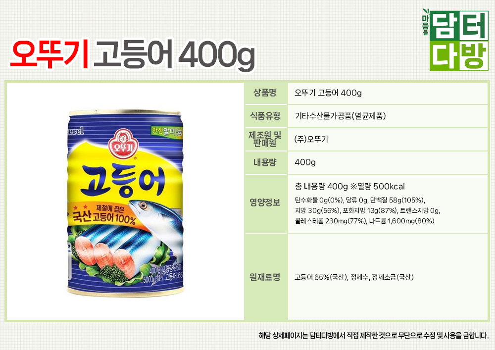오뚜기 고등어 400g X 12개