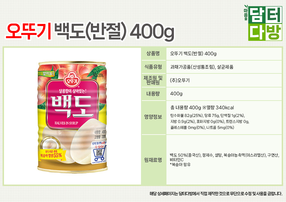 오뚜기 백도(반절) 400g X 12개