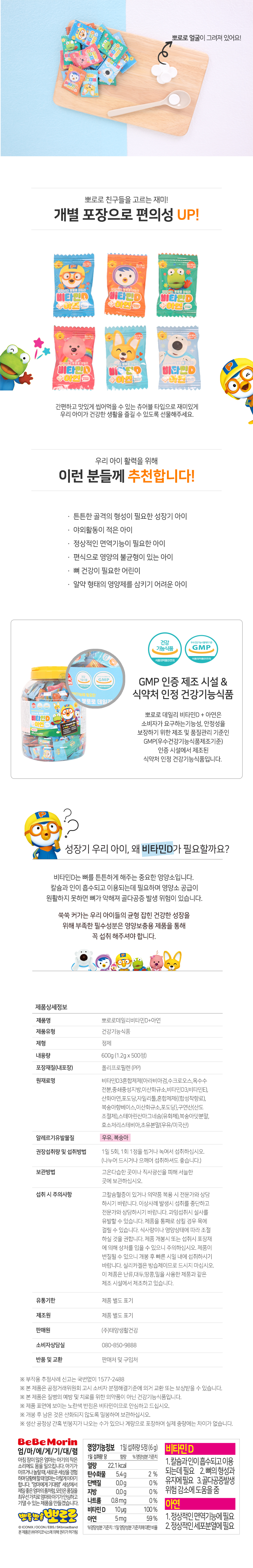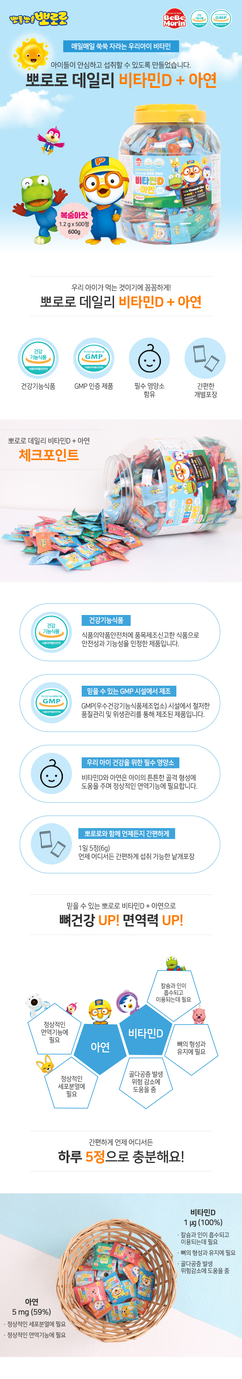 뽀로로 데일리 비타민D+아연 500정