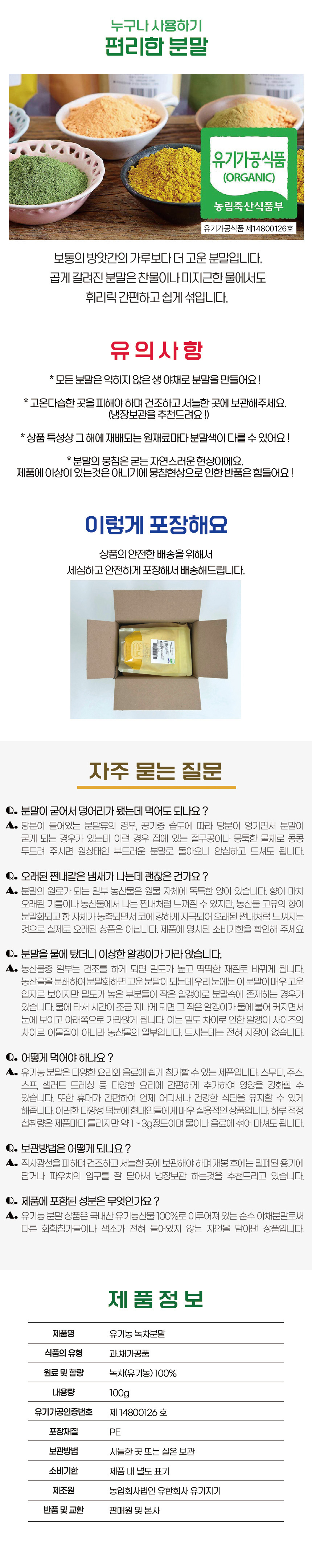 | 제품명 | 유기농 녹차분말 |