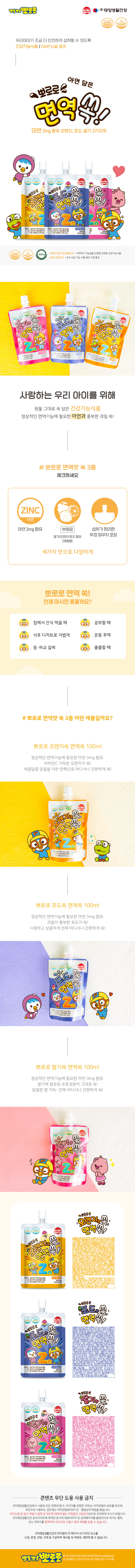 뽀로로 딸기맛쏙, 면역쏙 아연 음료 100ml X 10개