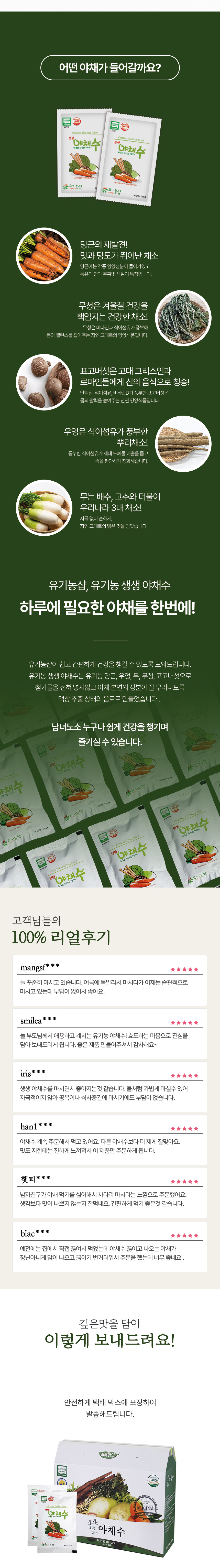 | 제품명 | 유기농 생생 야채수 |
