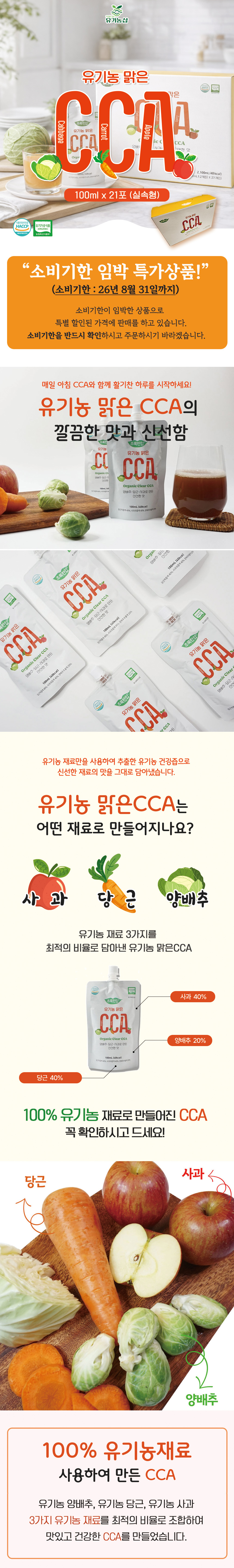 | 원재료명/함량 | 당근착즙액(7brix이상,터키산유기농)40%,사과착즙액(고형분13%이상,터키산유기농)40%,양배추추출액[고형분1.8%이상,양배추100%(국내산유기농),정제수]20% |