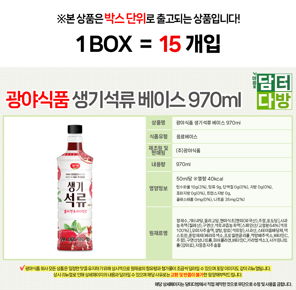 광야식품 생기석류 베이스 970ml 1BOX (15개입)