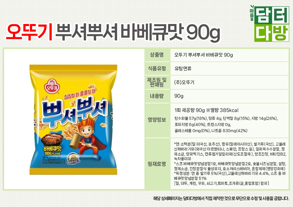 오뚜기 뿌셔뿌셔 바베큐맛 90g X 10개
