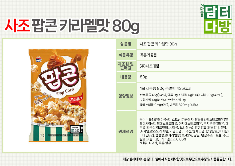 유전자재조합식품의 경우 표시 상세설명페이지 참고