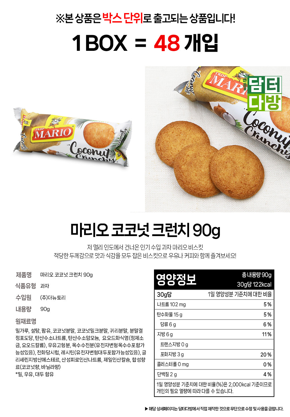 마리오 코코넛 크런치 90g 1BOX (48개입)