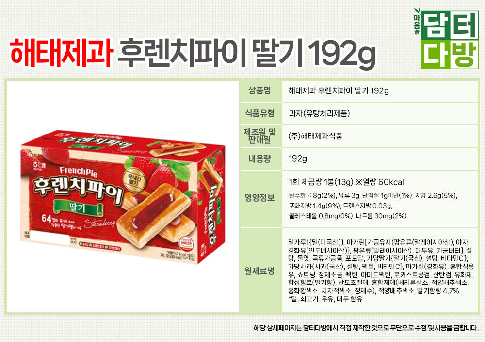 해태제과 후렌치파이 딸기 192g X 12개