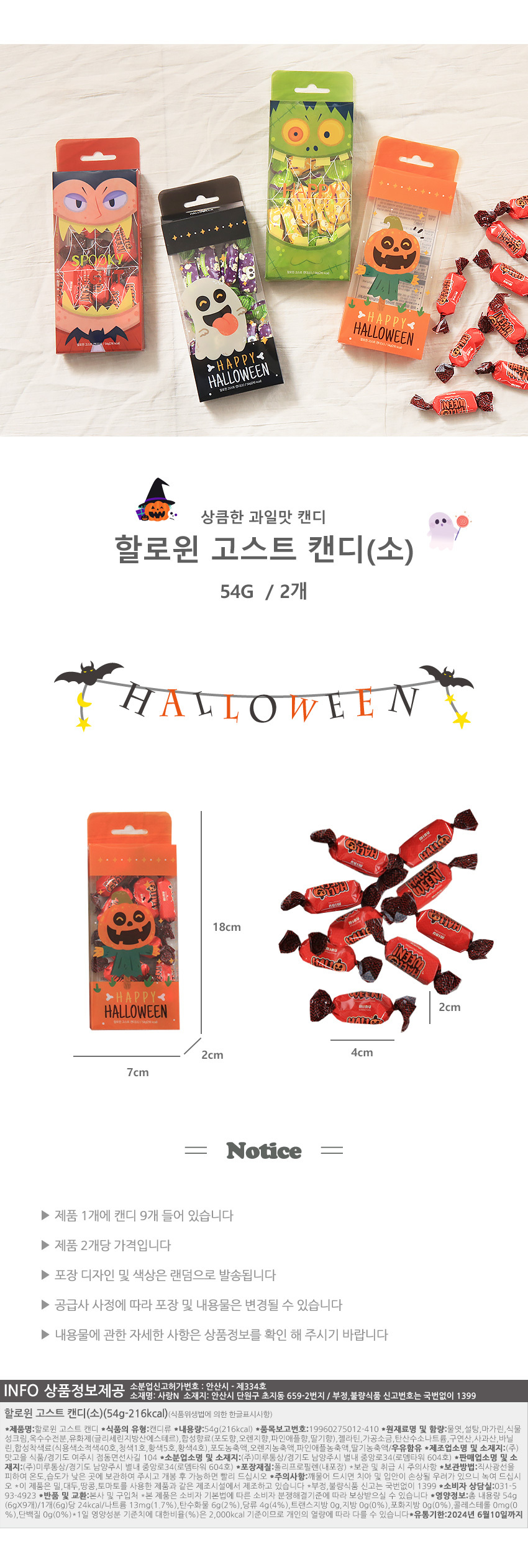 할로윈 고스트 캔디 (소) 2개 사탕 파티 데이 간식
