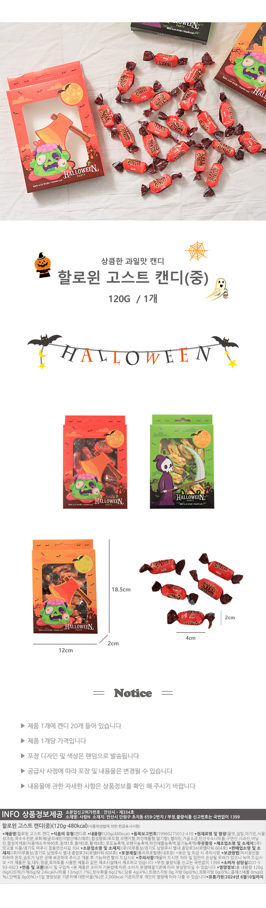 할로윈 고스트 캔디 (중) 사탕 파티 데이 간식 선물