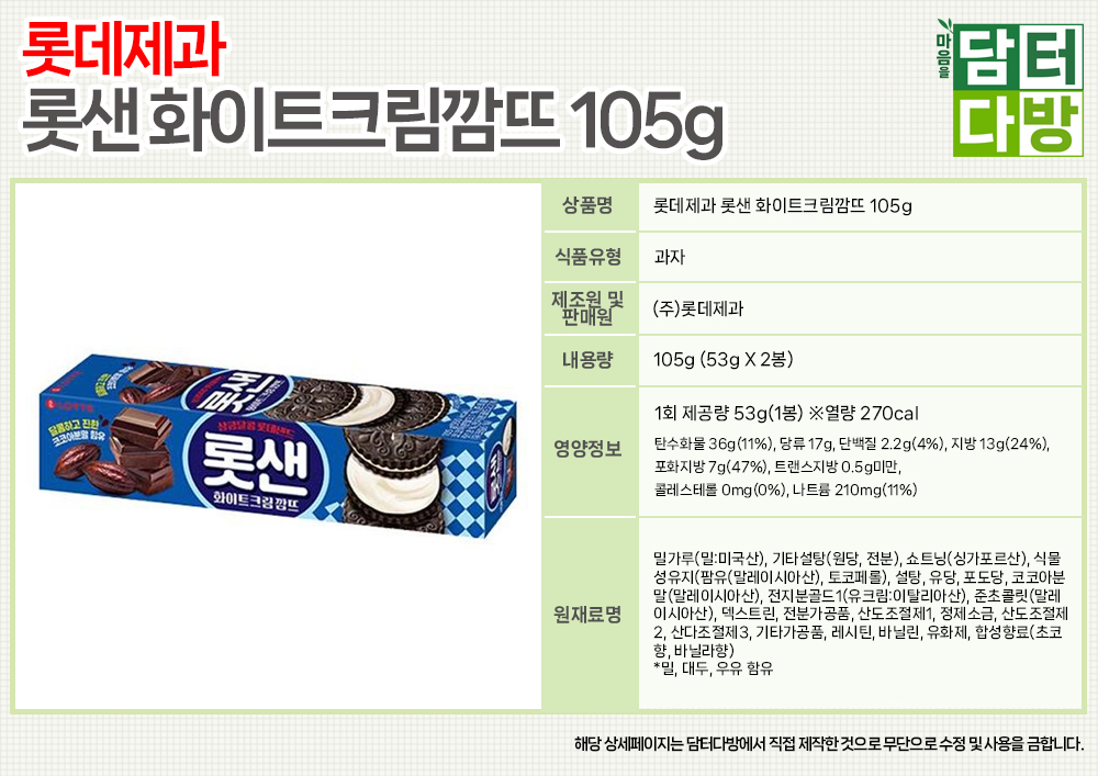 롯데제과 롯샌 화이트크림깜뜨 105g X 8개