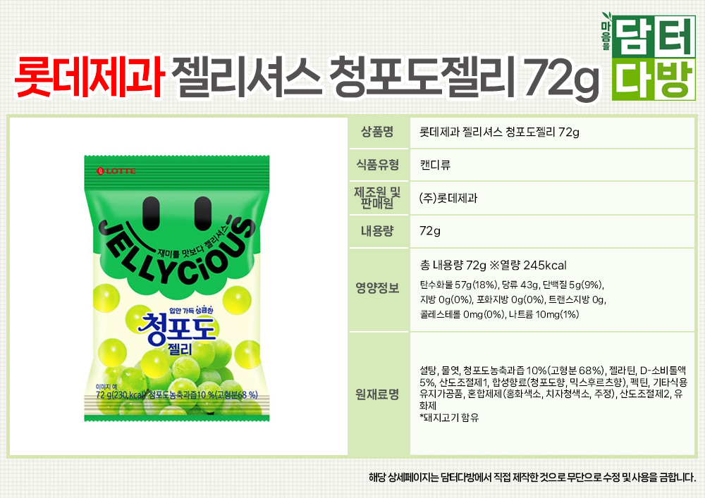 롯데제과 젤리셔스 청포도젤리 72g X 16개